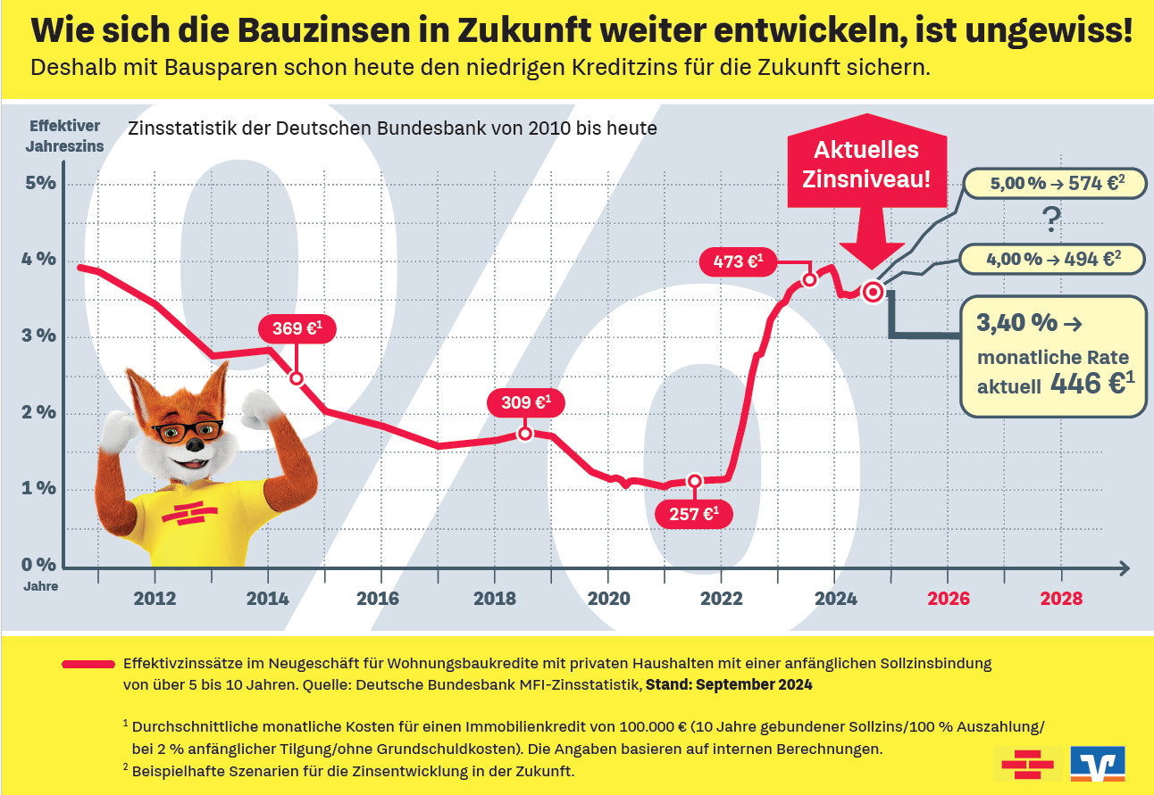 Sicher ist sicher: Deshalb ist es wichtig, sich die noch niedrigen Zinsen langfristig für die Zukunft zu sichern – und das geht nur mit einem Bausparvertrag.