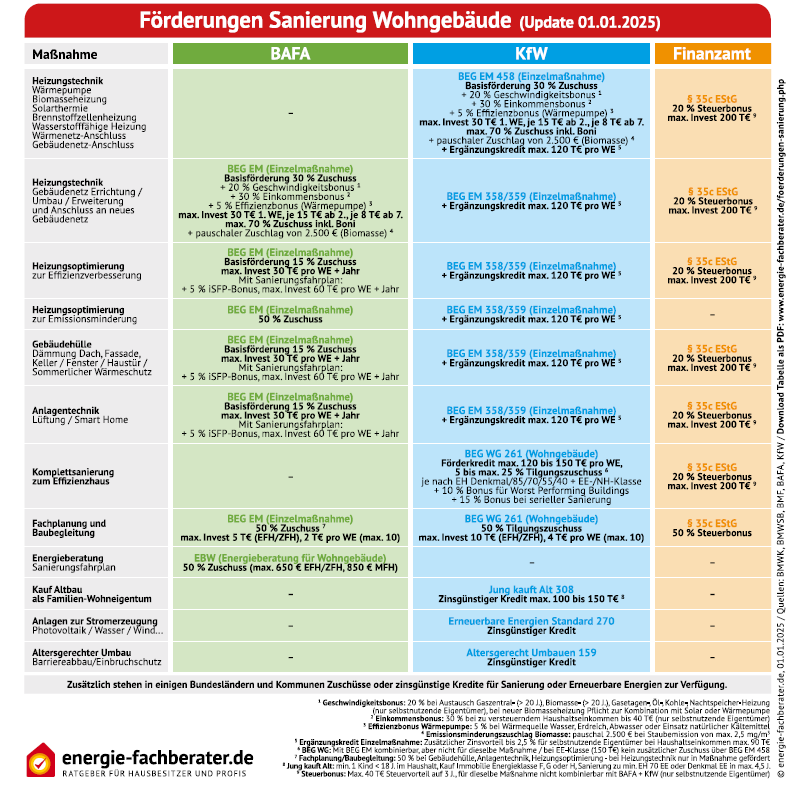 Wenn Du eine Sanierungsmaßnahme an deiner Immobilie planst, lass Dir diese Zuschüsse nicht entgehen! Stand:01.01.2025